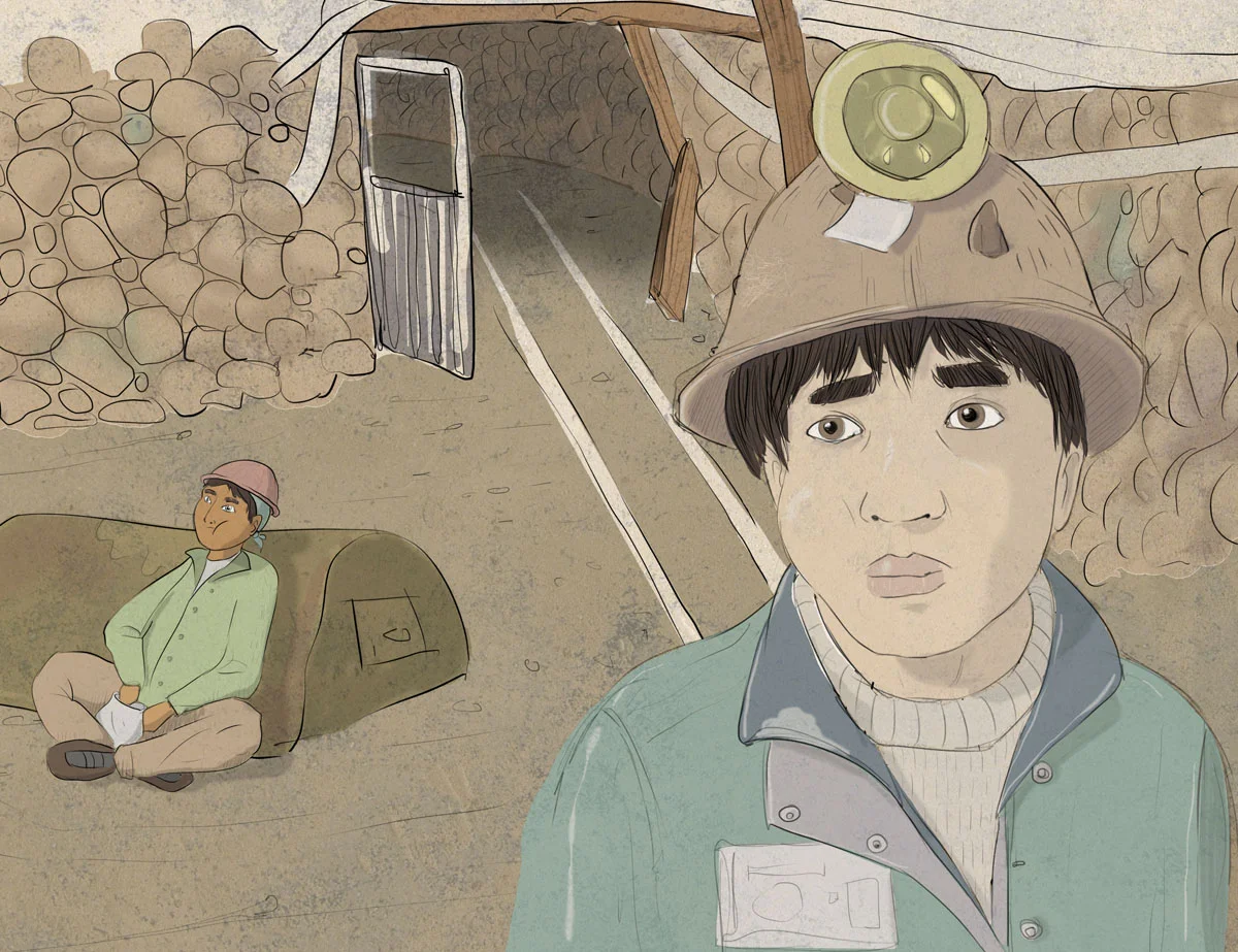 Il lavoro in miniera. Illustrazione di Federica Fruhwirth