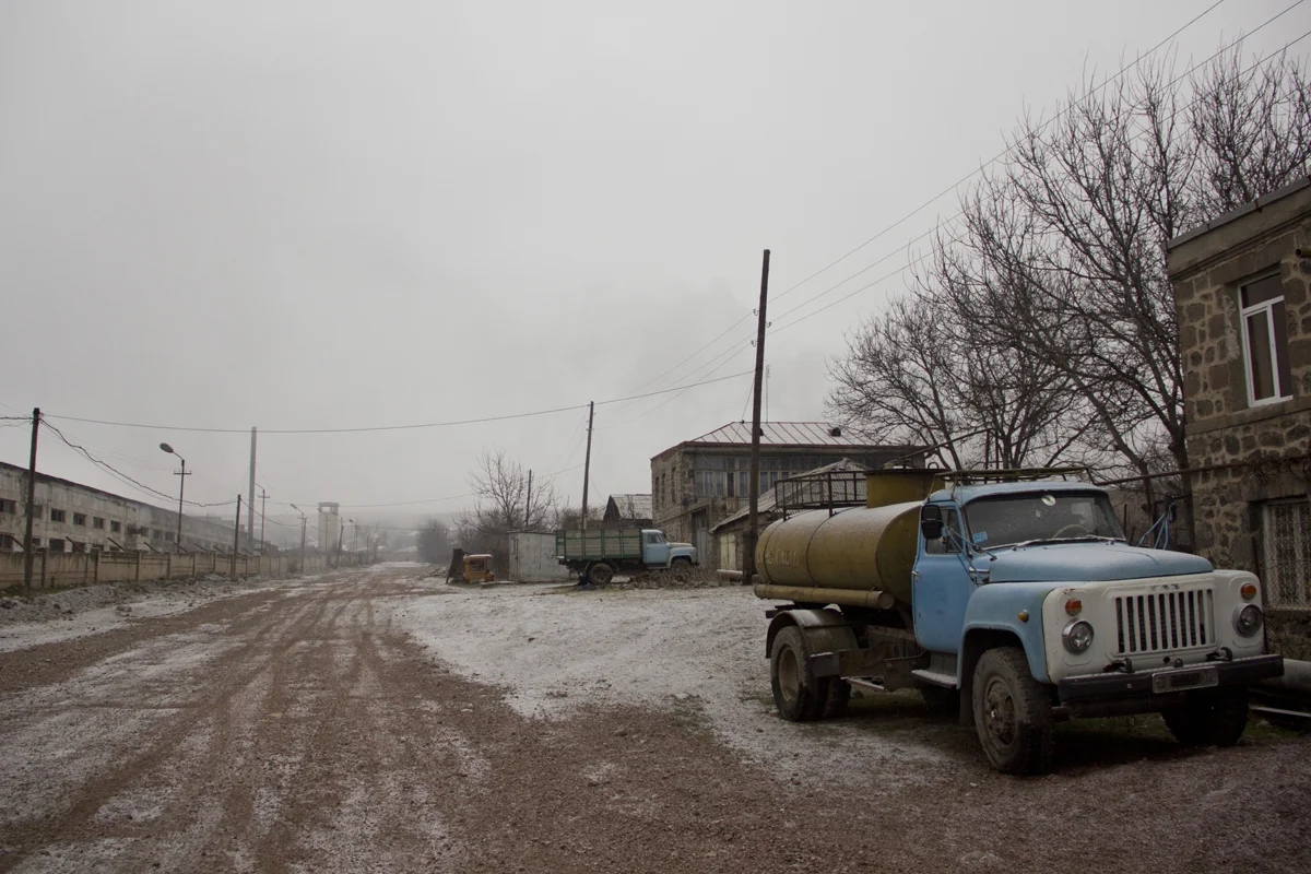 Raggiungere il Nagorno Karabakh è un viaggio lungo e difficile. Dal lato azero è severamente vietato oltreché pericoloso. L’unica soluzione è attraversare l’Armenia, con tre passi di montagna e tornanti che superano i 2300 metri sul livello del mare. D’inverno le temperature raggiungono i venti gradi sotto zero e le strade diventano impraticabili per la neve e il ghiaccio. Sull’altopiano di Sisian, prima del confine, nevica anche ad aprile e per mesi il paesaggio diventa un deserto bianco punteggiato da tralicci dell’alta tensione.